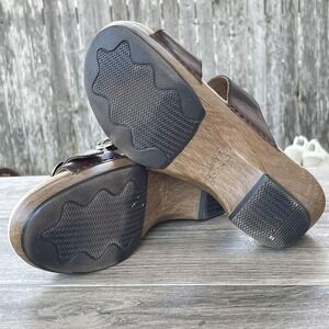Dansko Sophie Sandals Women 8.5 39 Brown Leather Wedge Buckle Strap Slide Shoes