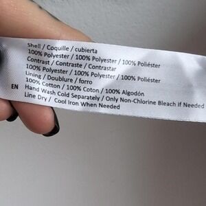 Material: Shell- 100% polyester, lining- 100% cotton
