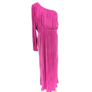 Petal & Pup Pontee Satin One Shoulder Pleated Midi Dress Orchid Pink Glam Large