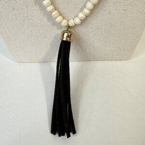 Leather Tassel and Stone Bead Necklace Mala Adjustable