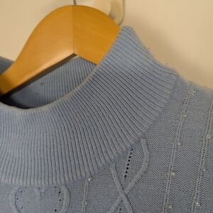 BABY BLUE CABLE KNIT SWEATER WITH BEADS SIZE SMALL