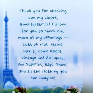 Do you know how to bundle? I offer 15% off every item if you buy two or more items from my closet! You also only need to pay shipping ONCE on a bundle -- up to 5 lbs per order. It’s a win-win! To bundle, simply tap on the shopping bag icon under each item you’d like. Posh will combine all the items into a single bundle, automatically deduct the 15% discount, and combine the shipping. If you send me a bundle, I might offer an even higher discount to you!