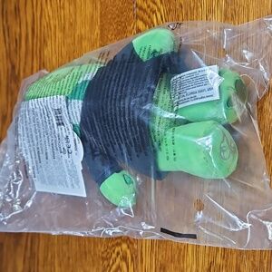 Delightful Details: Slytherin House Good Luck Bear 8-inch plush has a belly badge featuring the Slytherin House Crest. He also wears a House robe and scarf, and metallic ear details. His paws feature both Good Luck's four leaf clover emblem as well as the Harry Potter 25th Anniversary logo.