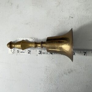 Vintage Solid Brass Hand Bell Made in India 6 Inch Tall Ornate Handle Gold Tone