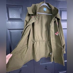 CECE by CYNTHIA STEFFE ARMY GREEN HOODED ANORAK W/ BUTTERFLY EMBROIDERY Sz 14