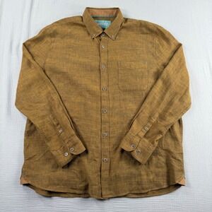32 Bar Blues Men's XL Linen Cotton Blend Long Sleeve Button Down Shirt Gold