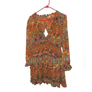 it's Multicolored Tiered Short Dress Long Sleeves Ladies Large Exotic Backless