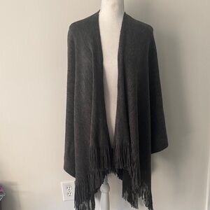 New York & Company Gray Sweater Poncho with Fringe - one size