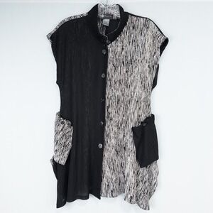 Chicos Cityscape Sheer Chiffon Button Shirt 3 (XL) Monochrome Urban Retro Artsy