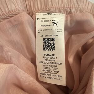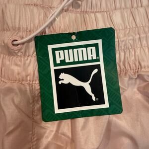 New with tags Puma Iconic T7 Woven Track Pants in Lotus pink, size Large. These lightweight woven nylon track pants feature Puma’s signature T7 side piping, elastic waistband with drawstring, and zippered ankle openings.