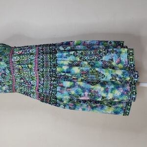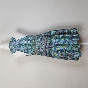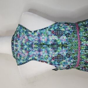 Rococo Sand Teal Boho Back To Greece Racerback Tank Mini Dress, size small. Buttons down the front. Pre-owned in excellent condition with no flaws found.