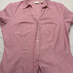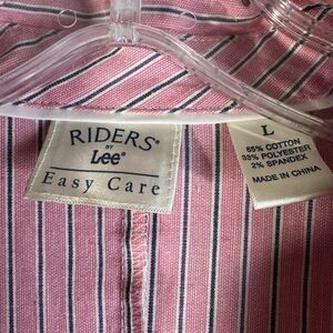 Riders by Lee Button Front Blouse Women’s Size L Pink Stripe Short Sleeve