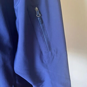 Marmot fleece lined rain jacket, size Large. Navy blue color with two embroidered logos- one o the chest and another on the back center. Has 3 zippered pockets , in excellent condition.