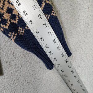 J.Crew Cardigan Sweater Mens Large Navy Beaige Fair Isle Wool Blend Button Front