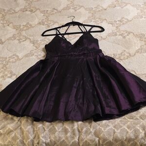 Camille La Vie Purple Satin Prom Dress Wedding Cocktail