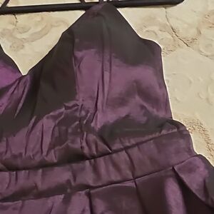 Chic purple satin dress with a fitted bodice. Flared skirt adds elegance. Perfect for prom, wedding, cocktail, events. I know is wrinkle but I would steam it before shipping.