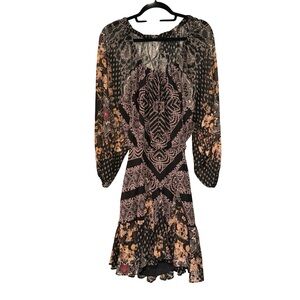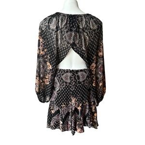 Free People Seven Wonders Mini Dress Open Back Deco Black Multicolor, Sz S