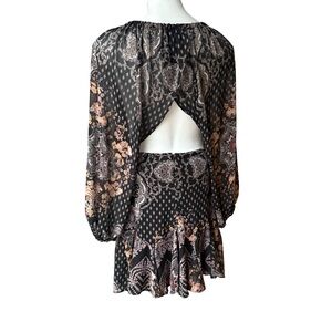 Free People Seven Wonders Mini Dress Open Back Deco Black Multicolor