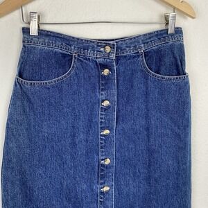 Vtg Gloria Vanderbilt 10 Denim Midi Skirt Button Front Blue Cottage Prairie Y2k