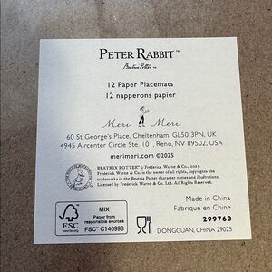 Meri Meri 12 Easter bunny paper placemats