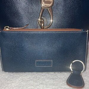 Dooney & Bourke NWOT 3 piece set Navy Blue Pebble Leather hobo Bag key fob/pouch