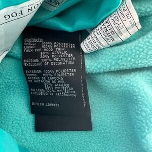 London Fog Kids Puffer Coat Jacket S/4 Blue Faux Fur Hood Embroidered Hearts