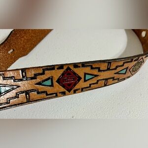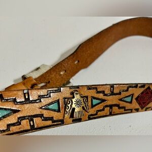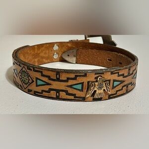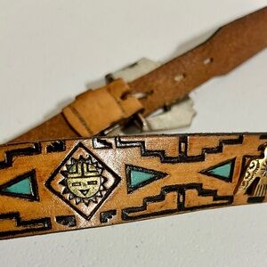 Native American Southwestern Style Tan Leather Belt with Silver Buckle