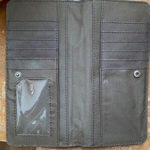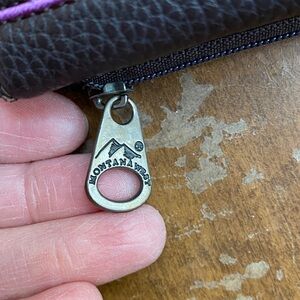 Unique western design wallet. Dark brown leather with purple embroidery and silver details. Great condition. Please let me know if you have any questions.