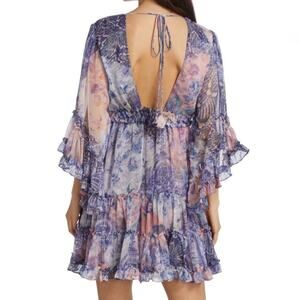 Misa Los Angeles Yasemin Butterfly Sleeve Babydoll Dress - Pink Blue - Size M
