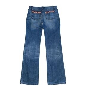 Roberto Cavalli Women's XL Multicolor Western Print Relaxed Jeans bling wide leg
