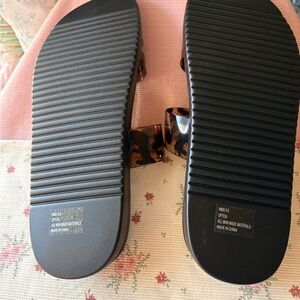 Dolce Vita Leopard Print Slide Sandals - Black and Brown
