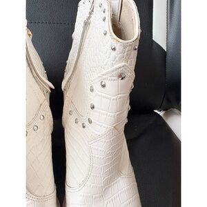 Sam Edelman Iris Studded Leather Western White Ankle Booties