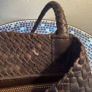 Discover the perfect blend of style and functionality with this elegant Madewell, brown woven tote bag. Ideal for everyday use, it adds a touch of sophistication to any outfit. Slightly used with two pictured minor imperfections in the color Coffee Bean.
