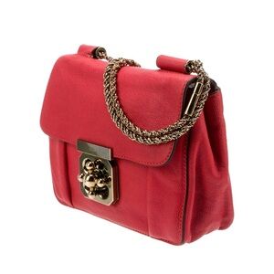 Chloe Red Leather Shoulder Bag with Gold Chain