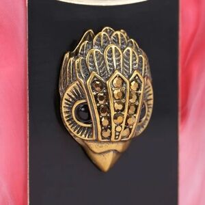 The Lipstick Clutch is made from a structured perspex in lipstick print. The antiqued brass Eagle head features brass crystals and black bead eyes on the front flap.