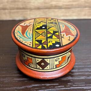 Peruvian Terracotta Jewelry Box – Hand-Painted Circular Clay Case, Handmade
