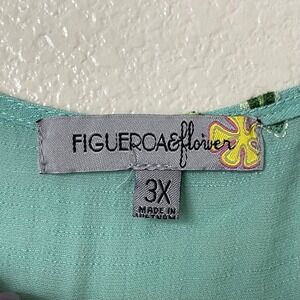 Anthropologie Fig & Flower Top Womens 3X Green Floral Embroidered Tie Neck Boho