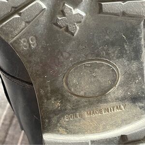 Condition: excellent condition, leather boots made in Italy. The brand has worn off inside so I don’t know what they are. These are my favorite. Super comfortable wide Velcro strap lug boots. Good quality leather