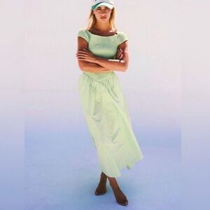 Free People Ceci Smocked Cotton Green Midi Dress