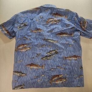 Columbia River Lodge Fish Print Shirt XL Blue Short Sleeve