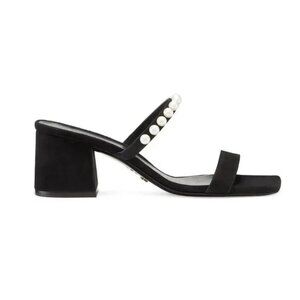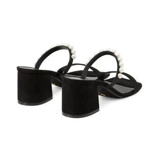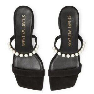 New Stuart Weitzman Goldie 60 Pearl Suede Sandal Black 7 $525