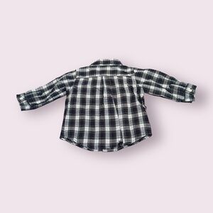 Stylish plaid button-up shirt for kids. Features a classic black and white design, perfect for any occasion.