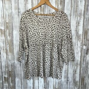 Lucky Brand Cream & Brown Leopard Tee Women’s 3X
