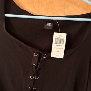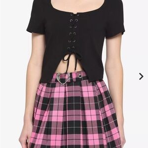 Hot Topic Black Lace-Up Cutout Girls Crop T-Shirt NWT L