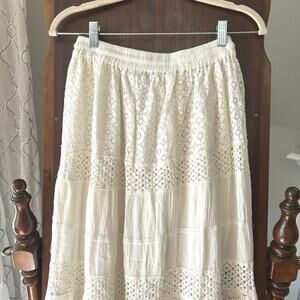 Vintage Y2K bohemian boho cream tiered lace maxi skirt size small