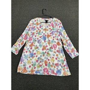 New Ali Miles Blouse Top Womens Large Colorful Boho Polka Dot AOP Tie Dye V-Neck