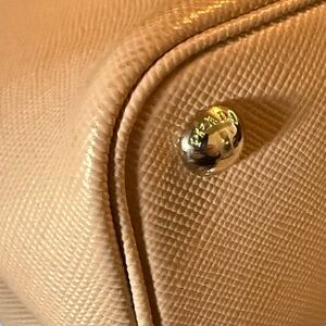 Prada Handbag 2 Way Bag Leather Pink Beige. Clean inside and out. Has a minor scratch on the side.