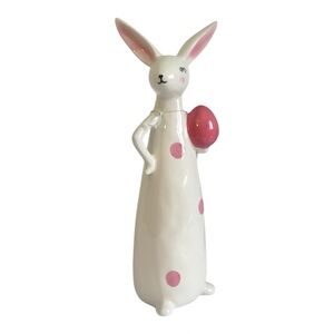 Martha Stewart Ceramic Easter Bunny Figurine Pink Polkadots, Holding A Pink Egg