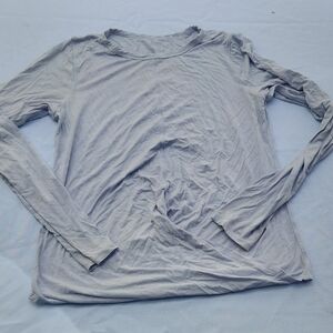 Elevate your wardrobe with this stylish light gray women's top. Perfect for any occasion, this top offers both comfort and elegance. please see pictures light stains and small hole on the Sleve