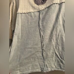 Oli & Hali Blue and Cream Blouse with Purple Floral Accent